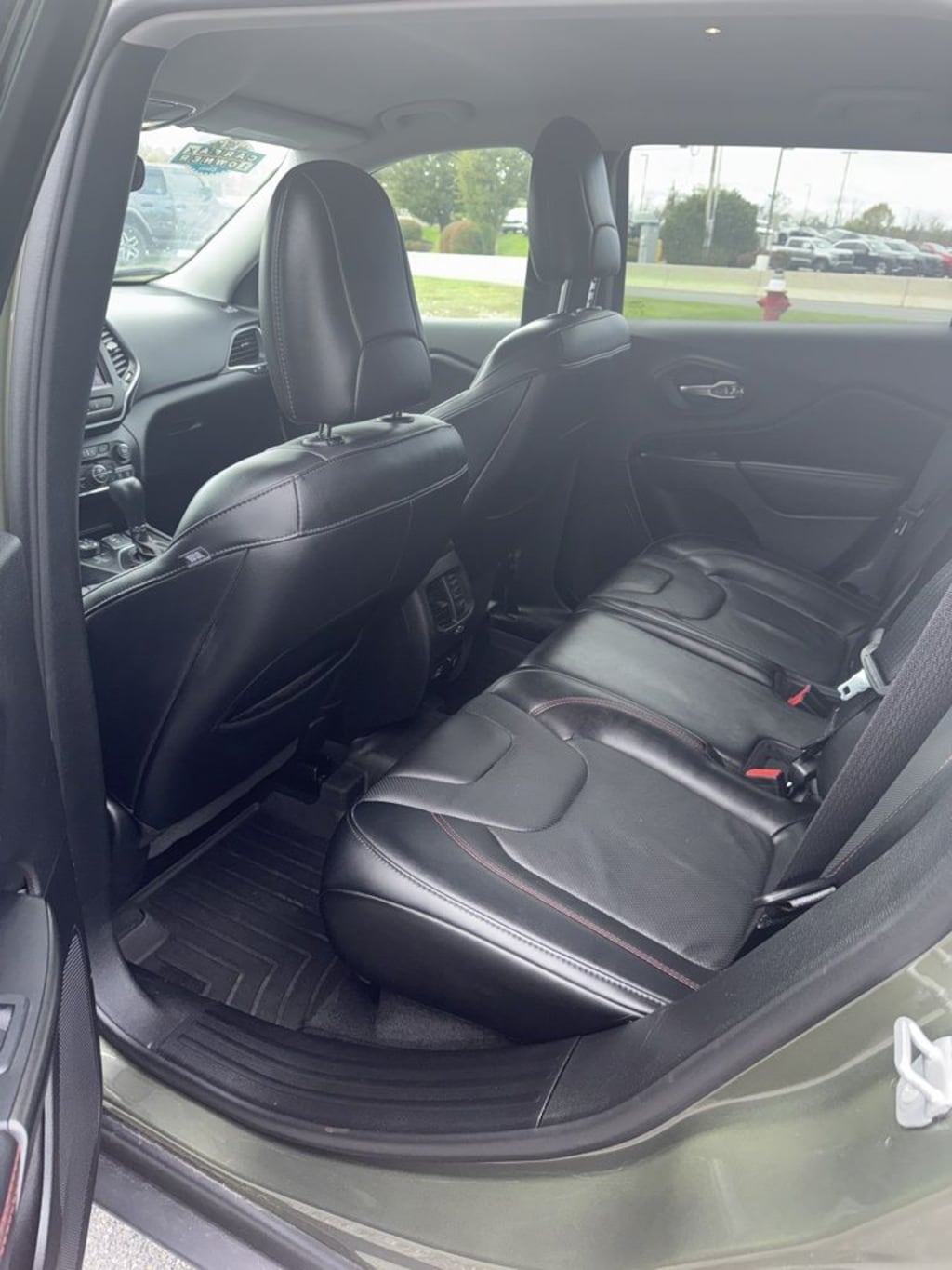 FCA US LLC Certified Pre-Owned Certified, 3.517 Axle Ratio, 4-Wheel Disc Brakes, 6 Speakers, ABS brakes, Air Conditioning, Alloy wheels, AM/FM radio: SiriusXM, Anti-whiplash front head restraints, Apple CarPlay/Android Auto, Auto-Dimming Rear-View Mirror, Automatic temperature control, AutoStick Automatic Transmission, Auxiliary Transmission Oil Cooler, Brake assist, Cloth/Premium Vinyl Bucket Seats, Comfort/Convenience Group, Compass, Delay-off headlights, Driver door bin, Driver vanity mirror, Dual front impact airbags, Dual front side impact airbags, Electronic Stability Control, Exterior Mirrors w/Memory, Four wheel independent suspension, Front anti-roll bar, Front Bucket Seats, Front Center Armrest, Front dual zone A/C, Front fog lights, Front License Plate Bracket, Front reading lights, Fully automatic headlights, Hands-Free Power Liftgate, Heated door mirrors, Heated front seats, Heated steering wheel, Hill Descent Control, Illuminated entry, K-Black Door Trim Panel Appliques, K-Black Interior Accents, Knee airbag, Leather Shift Knob, Low tire pressure warning, Occupant sensing airbag, Off Road Suspension, Outside temperature display, Overhead airbag, Overhead console, Panic alarm, ParkView Rear Back-Up Camera, Passenger door bin, Passenger vanity mirror, Power door mirrors, Power driver seat, Power Driver/Passenger 4-Way Lumbar Adjust, Power Front Driver/Passenger Seats, Power steering, Power windows, Premium Leather Package, Premium Leather Trimmed Bucket Seats, Quick Order Package 27E Trailhawk, Radio data system, Radio: Uconnect 4 w/8.4" Display, Radio/Driver Seat/Exterior Mirrors Memory, Rain sensing wipers, Rear anti-roll bar, Rear reading lights, Rear seat center armrest, Rear side impact airbag, Rear window defroster, Rear window wiper, Remote keyless entry, Security Alarm, Speed control, Speed-sensing steering, Split folding rear seat, Spoiler, Steering wheel mounted audio controls, Tachometer, Telescoping steering wheel, Tilt steering wheel, Traction control, Trip computer, Turn signal indicator mirrors, Universal Garage Door Opener, Variably intermittent wipers, Ventilated Front Seats, Voltmeter, Wheels: 17" x 7.5" Black Painted Aluminum, Wheels: 17" x 7.5" Painted Diamond Cut Aluminum.