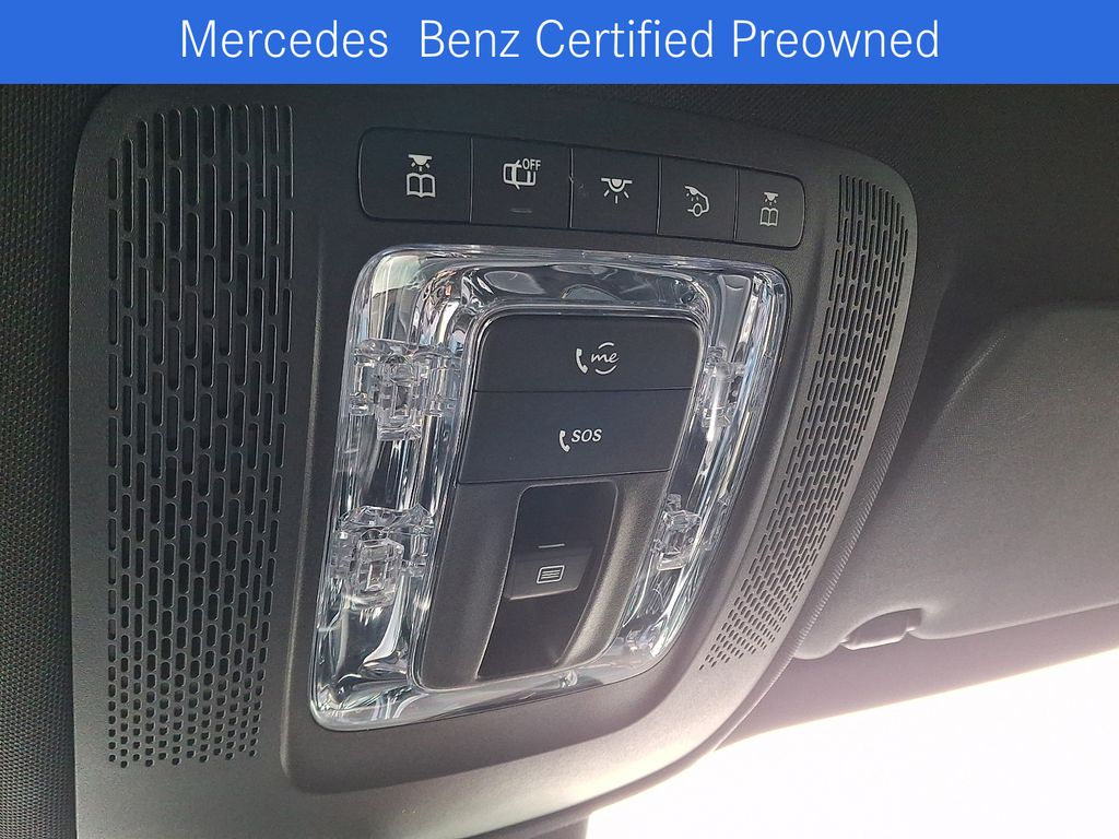 4-Wheel Disc Brakes, 8 Speakers, 8-Way Power Front Comfort Seats, ABS brakes, Air Conditioning, Alloy wheels, AM/FM radio, Apple CarPlay®/Android Auto®, Automatic temperature control, Axle Ratio: TBD, Brake assist, Bumpers: body-color, Child-Seat-Sensing Airbag, Delay-off headlights, Driver door bin, Driver vanity mirror, Dual front impact airbags, Dual front side impact airbags, Electronic Stability Control, Emergency communication system: Mercedes-Benz Emergency Call Service, Exterior Parking Camera Rear, Four wheel independent suspension, Front anti-roll bar, Front Bucket Seats, Front Center Armrest, Front dual zone A/C, Front fog lights, Front reading lights, Fully automatic headlights, Heated door mirrors, Illuminated entry, Knee airbag, Low tire pressure warning, MB-Tex Upholstery, Memory seat, Occupant sensing airbag, Outside temperature display, Overhead airbag, Overhead console, Panic alarm, Passenger door bin, Passenger vanity mirror, Power door mirrors, Power driver seat, Power Liftgate, Power passenger seat, Power steering, Power windows, Premium audio system: MBUX, Radio data system, Radio: Mercedes-Benz User Experience (MBUX), Rain sensing wipers, Rear anti-roll bar, Rear fog lights, Rear reading lights, Rear window defroster, Rear window wiper, Remote keyless entry, Roof rack: rails only, Security system, Smartphone Integration, Speed control, Speed-sensing steering, Split folding rear seat, Spoiler, Steering wheel mounted audio controls, Tachometer, Telescoping steering wheel, Tilt steering wheel, Traction control, Trip computer, Turn signal indicator mirrors, Variably intermittent wipers, Wheels: 7.5J x 18" Twin 5-Spoke.