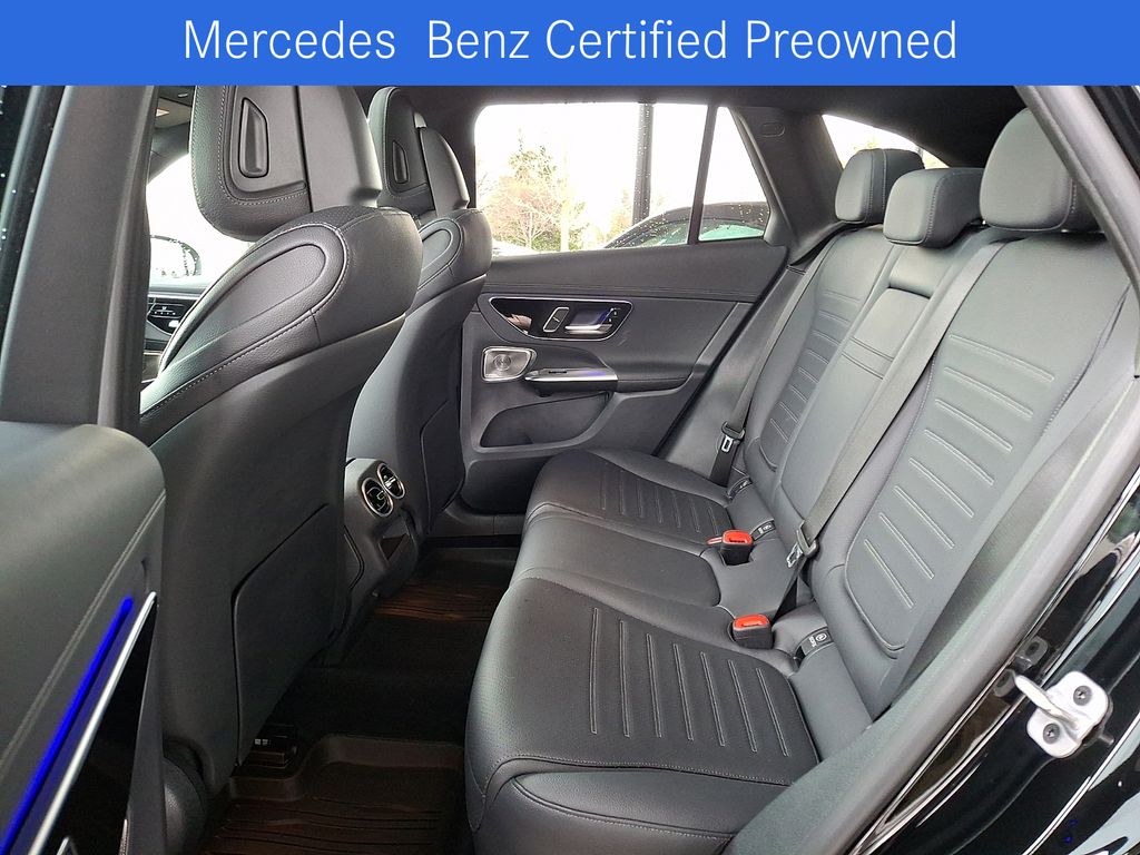 11.9" Center Touchscreen Display, 16-Way Power Front Seats w/Memory/Lumbar/Thigh Ext, 18" 10-Spoke Wheels, 3 USB C-Ports, 4-Way Power Lumbar Support, 4-Wheel Disc Brakes, 8 Speakers, ABS brakes, Air Conditioning, Alloy wheels, AM/FM radio, Apple CarPlay®/Android Auto®, Auto High-beam Headlights, Auto tilt-away steering wheel, Auto-dimming Rear-View mirror, Automatic temperature control, Brake assist, Bumpers: body-color, Child-Seat-Sensing Airbag, Compass, Delay-off headlights, Driver door bin, Driver vanity mirror, Dual front impact airbags, Dual front side impact airbags, Electronic Stability Control, Emergency communication system: eCall Emergency System, Exterior Parking Camera Rear, Four wheel independent suspension, Front anti-roll bar, Front Bucket Seats, Front Center Armrest, Front dual zone A/C, Front reading lights, Fully automatic headlights, Garage door transmitter: HomeLink, Genuine wood dashboard insert, HD Radio, Head restraints memory, Heated door mirrors, Heated Front Bucket Seats, Heated front seats, Illuminated entry, Inductive Wireless Charging, Knee airbag, Leather steering wheel, Low tire pressure warning, MB-Tex Upholstery, MBUX Intelligent Vehicle Assistant (Hey Mercedes), Memory seat, Occupant sensing airbag, Outside temperature display, Overhead airbag, Overhead console, Panic alarm, Passenger door bin, Passenger vanity mirror, Power adjustable front head restraints, Power door mirrors, Power driver seat, Power Liftgate, Power passenger seat, Power steering, Power windows, Radio data system, Rain sensing wipers, Rear anti-roll bar, Rear fog lights, Rear reading lights, Rear seat center armrest, Rear window defroster, Rear window wiper, Remote keyless entry, Security system, Speed control, Speed-sensing steering, Split folding rear seat, Spoiler, Steering wheel memory, Steering wheel mounted audio controls, Tachometer, TBD Axle Ratio, Telescoping steering wheel, Tilt steering wheel, Traction control, Trip computer, Turn signal indicator mirrors, Variably intermittent wipers, Wireless Android Auto®, Wireless Apple CarPlay®.