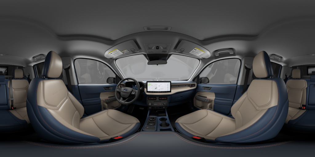 Comfort and convenience are paramount in the Maverick Lariat, with features like dual-zone automatic climate control, heated front seats, a heated steering wheel, and power-adjustable driver's seat. The ActiveX-trimmed front bucket seats provide exceptional support and style, while the rear seat center armrest adds an extra touch of luxury.