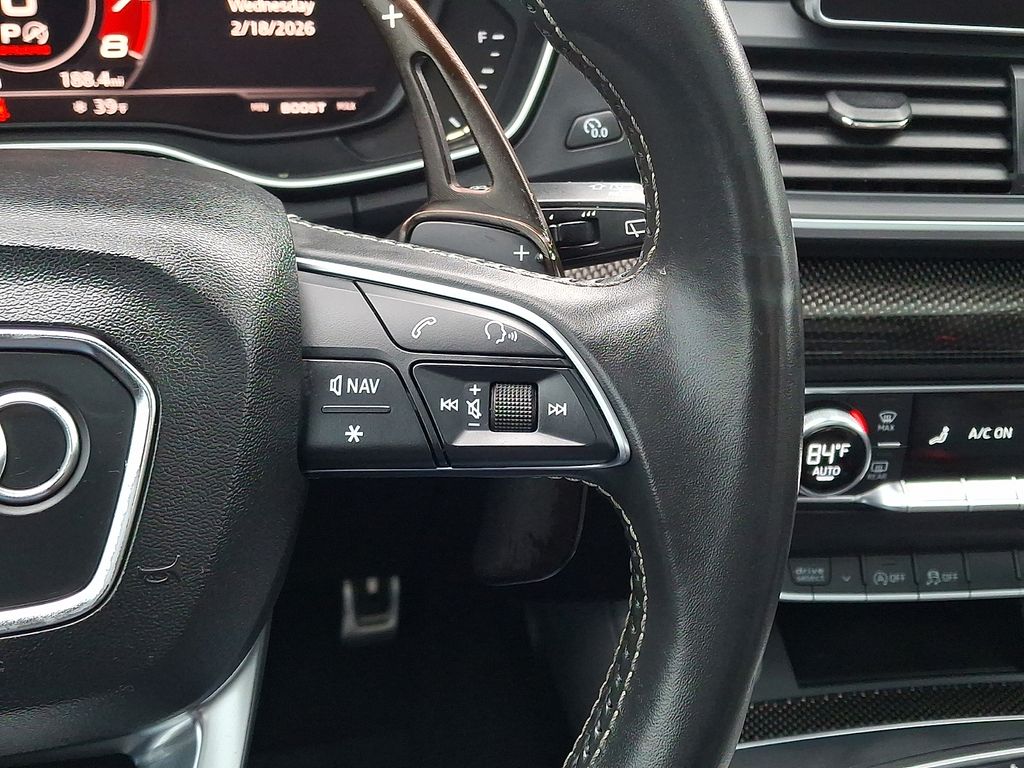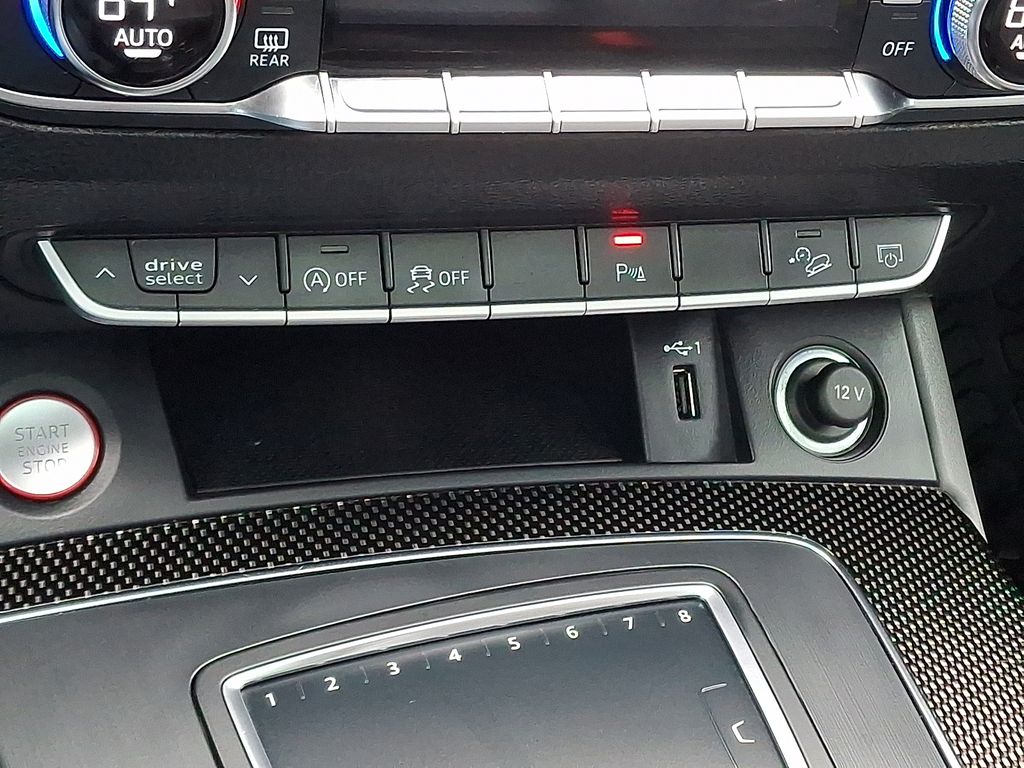 10 Speakers, 3.204 Axle Ratio, 4-Wheel Disc Brakes, ABS brakes, Adaptive suspension, Air Conditioning, Alloy wheels, AM/FM radio: SiriusXM, Audi Beam-Rings, Audi Connect PRIME & PLUS, Audi smartphone interface (Apple CarPlay/Android Auto), Audi Virtual Cockpit, Auto-dimming door mirrors, Auto-dimming Rear-View mirror, Automatic temperature control, Bang & Olufsen 3D Sound System, Brake assist, Bumpers: body-color, Carbon Atlas Inlays, Compass, Delay-off headlights, Driver door bin, Driver vanity mirror, Dual front impact airbags, Dual front side impact airbags, Electronic Stability Control, Emergency communication system: Audi connect CARE, Exterior Parking Camera Rear, Fine Nappa Leather Seating Surfaces, Fine Nappa Leather Upholstery, Four wheel independent suspension, Front anti-roll bar, Front Bucket Seats, Front Center Armrest, Front dual zone A/C, Front fog lights, Front reading lights, Garage door transmitter: HomeLink, Heated door mirrors, Heated front seats, Heated Front Sport Seats, Illuminated entry, Leather Shift Knob, Leather steering wheel, Leather/Alcantara Seating Surfaces, Leatherette Covered Center Console, Low tire pressure warning, Memory seat, Navigation Package, Occupant sensing airbag, Outside temperature display, Overhead airbag, Overhead console, Panic alarm, Passenger door bin, Passenger vanity mirror, Power door mirrors, Power driver seat, Power Liftgate, Power moonroof, Power passenger seat, Power steering, Power windows, Radio data system, Radio: MMI Navigation Plus w/MMI Touch, Rain sensing wipers, Rear air conditioning, Rear anti-roll bar, Rear fog lights, Rear reading lights, Rear seat center armrest, Rear window defroster, Rear window wiper, Remote keyless entry, Roof rack, Security system, Speed control, Speed-sensing steering, Speed-Sensitive Wipers, Split folding rear seat, Spoiler, Sport steering wheel, Steering wheel mounted audio controls, Tachometer, Telescoping steering wheel, Tilt steering wheel, Traction control, Trip computer, Turn signal indicator mirrors, Variably intermittent wipers, Wheels: 20" 5-Double-Spoke Star Design.