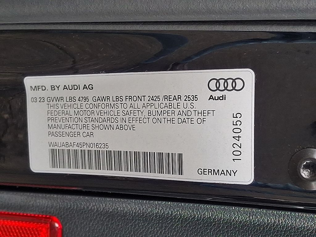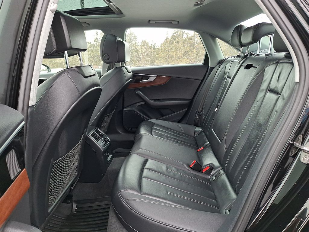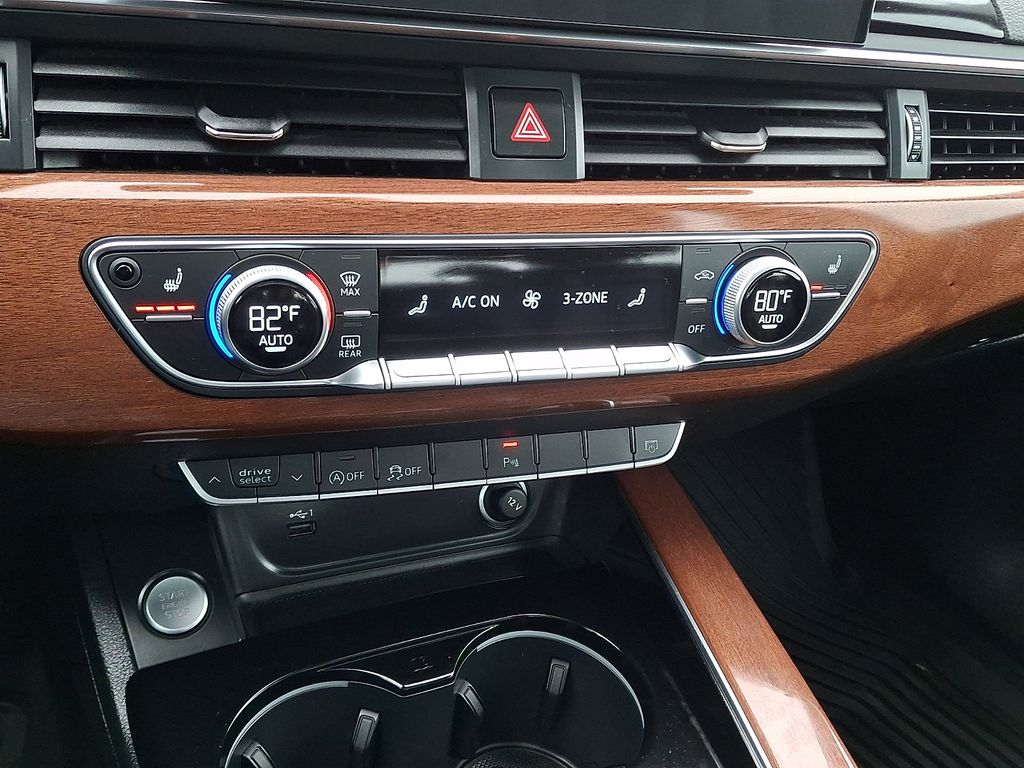 7-Speed Automatic S tronic, quattro, Black Leather, 10 Speakers, 4-Wheel Disc Brakes, ABS brakes, Adaptive Cruise Control, Air Conditioning, Alarm System w/Motion Sensor, Alloy wheels, AM/FM radio, Anti-whiplash front head restraints, Audi Advanced Key, Audi Beam-Rings, Audi Guard All-Weather Mats, Audi Side Assist w/Pre Sense Rear, Audi smartphone interface (Apple CarPlay/Android Auto), Auto High-beam Headlights, Auto-dimming Rear-View mirror, Automatic temperature control, Brake assist, Bumpers: body-color, Compass, Convenience Package, Delay-off headlights, Driver door bin, Driver vanity mirror, Dual front impact airbags, Dual front side impact airbags, Electronic Stability Control, Emergency communication system: Audi connect CARE, Exterior Parking Camera Rear, Four wheel independent suspension, Front anti-roll bar, Front Bucket Seats, Front Center Armrest, Front dual zone A/C, Front fog lights, Front reading lights, Garage door transmitter: HomeLink, Genuine wood dashboard insert, Genuine wood door panel insert, Heated door mirrors, Heated Front Bucket Seats, Heated front seats, Heated Steering Wheel, Illuminated entry, Knee airbag, Leather Seating Surfaces, Leather Shift Knob, Leather steering wheel, Low tire pressure warning, Memory for Driver's Seat, Occupant sensing airbag, Outside temperature display, Overhead airbag, Overhead console, Panic alarm, Parking System Plus, Passenger door bin, Passenger vanity mirror, Power door mirrors, Power driver seat, Power Folding Exterior Mirrors, Power moonroof, Power passenger seat, Power steering, Power windows, Radio data system, Radio: Audi Sound System, Rain sensing wipers, Rear air conditioning, Rear anti-roll bar, Rear reading lights, Rear seat center armrest, Rear window defroster, Remote keyless entry, SiriusXM w/360L, Speed control, Speed-sensing steering, Speed-Sensitive Wipers, Split folding rear seat, Steering wheel mounted audio controls, Tachometer, Telescoping steering wheel, Tilt steering wheel, Traction control, Trip computer, Turn signal indicator mirrors, Variably intermittent wipers, Wheels: 17" 10-Spoke Design Forged, 7-Speed Automatic S tronic, quattro, Black Leather.