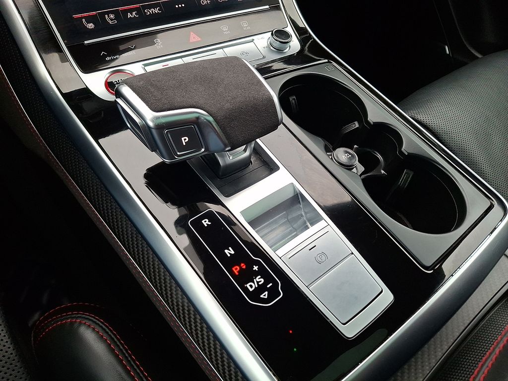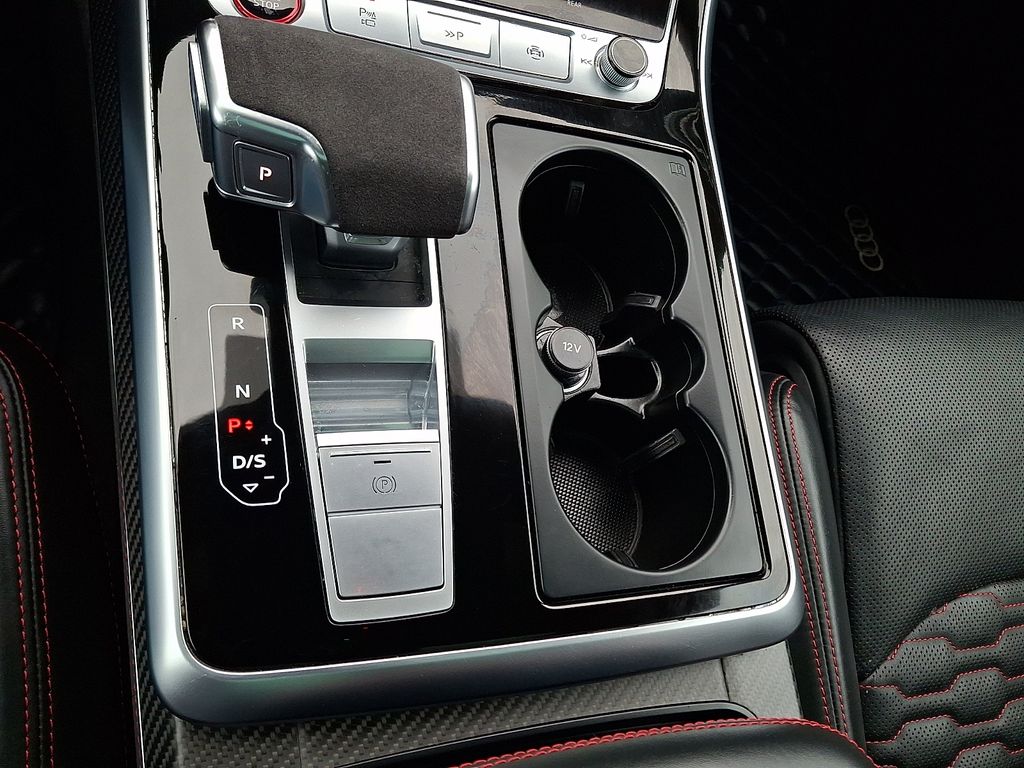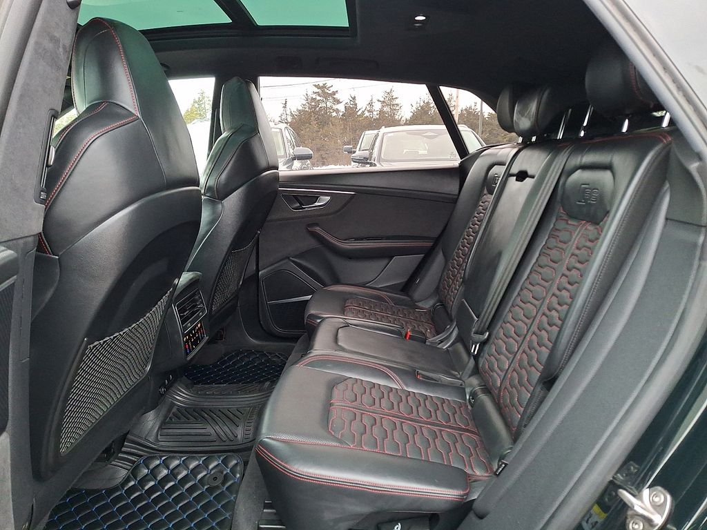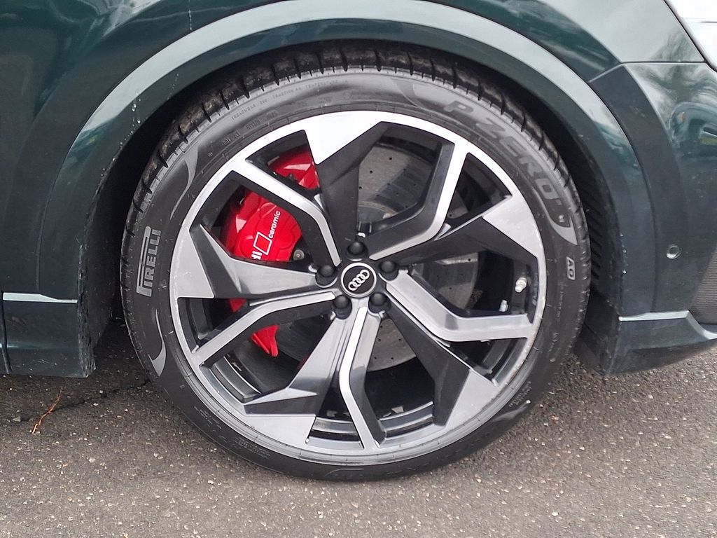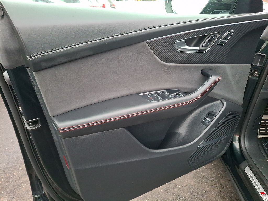 The exterior of the RS Q8 exudes a bold and commanding presence, with the Black Optic and Carbon Optic Packages adding a striking, aggressive aesthetic. The 23-inch Audi Sport wheels and sport exhaust system with black tips complement the vehicle's powerful stance.