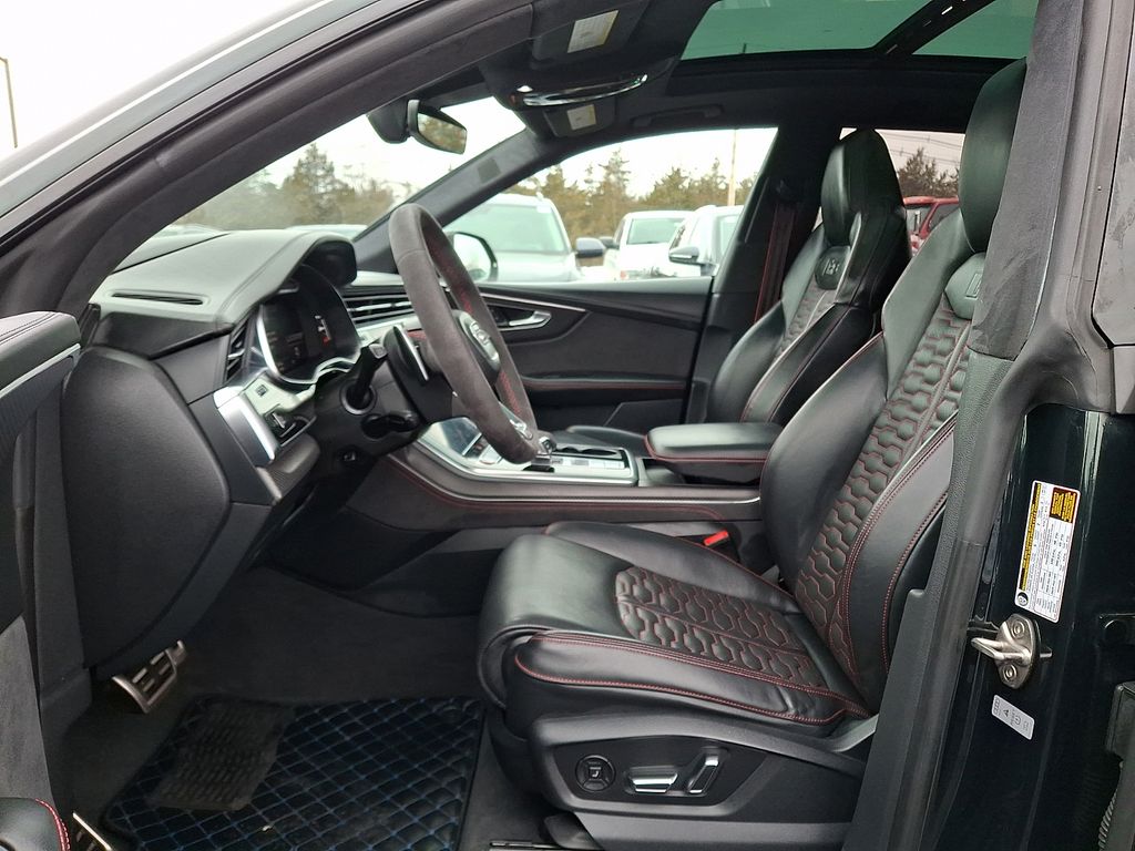 This meticulously equipped RS Q8 is further enhanced by a host of premium features that elevate the driving experience. The panoramic sunroof, Bang & Olufsen premium sound system, and Audi MMI Navigation Plus with Touch Response provide unparalleled comfort and convenience. The heated and ventilated sport seats, heated steering wheel, and dual-zone climate control ensure you and your passengers enjoy every mile.