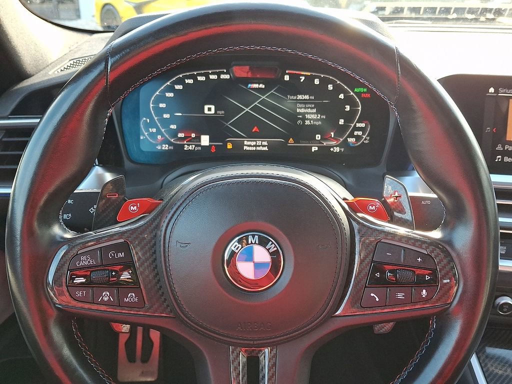 16 Speakers, 4-Wheel Disc Brakes, ABS brakes, Active Driving Assistant Pro, Adaptive suspension, Air Conditioning, Alloy wheels, AM/FM radio: SiriusXM with 360L, Apple CarPlay & Android Auto Compatibility, Auto High-beam Headlights, Auto-dimming door mirrors, Auto-dimming Rear-View mirror, Automatic temperature control, BMW Assist eCall, BMW TeleServices, Brake assist, Bumpers: body-color, Carbon Fiber Trim, Compass, ConnectedDrive Services, Delay-off headlights, Driver door bin, Driver vanity mirror, Driving Assistance Professional Package, Dual front impact airbags, Dual front side impact airbags, Electronic Stability Control, Emergency communication system: BMW Assist eCall, Enhanced Bluetooth, Extended Merino Leather Upholstery, Extended Traffic Jam Assistant, Exterior Parking Camera Rear, Four wheel independent suspension, Front anti-roll bar, Front Bucket Seats, Front Center Armrest, Front dual zone A/C, Front reading lights, Fully automatic headlights, Garage door transmitter, harman/kardon Surround Sound System, harman/kardon® Speakers, Heated door mirrors, Heated Front Seats, Heated front seats, Illuminated entry, Knee airbag, Leather Shift Knob, Live Cockpit Pro w/Navi, Low tire pressure warning, Lumbar Support, M Carbon Bucket Seats, M Carbon Exterior Package, M Drive Professional, M Driver's Package, M Shadowline Lights, M Sport Seats, Memory seat, Navigation System, Occupant sensing airbag, Outside temperature display, Overhead airbag, Overhead console, Panic alarm, Passenger door bin, Passenger vanity mirror, Power door mirrors, Power driver seat, Power Front Seats, Power passenger seat, Power steering, Power windows, Radio data system, Radio: AM/FM Audio System, Rain sensing wipers, Rear air conditioning, Rear anti-roll bar, Rear reading lights, Rear seat center armrest, Rear window defroster, Remote keyless entry, Security system, SiriusXM w/360L, Speed control, Speed-sensing steering, Speed-Sensitive Wipers, Split folding rear seat, Spoiler, Sport steering wheel, Steering wheel mounted audio controls, Tachometer, Telescoping steering wheel, Tilt steering wheel, Traction control, Trip computer, Turn signal indicator mirrors, Variably intermittent wipers, Wheels: 19 x 9.5 Fr/20 x 10.5 Rr (Style 826M), Wheels: 19 x 9.5 Fr/20 x 10.5 Rr M Double-Spk.