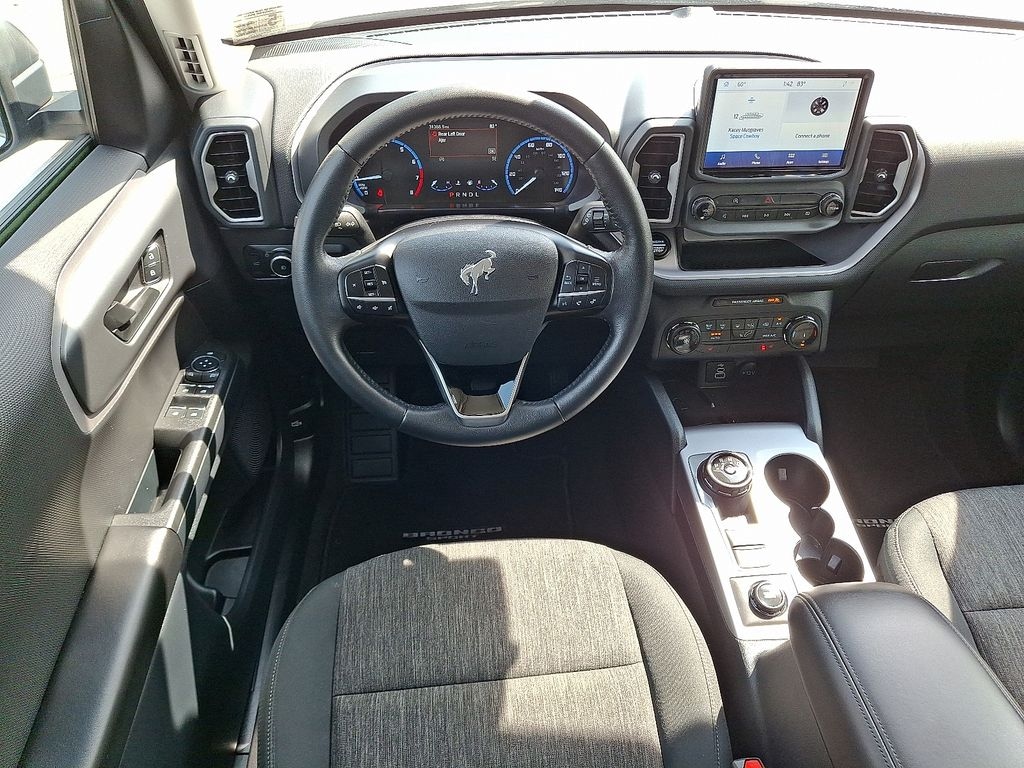 Bronco Sport Big Bend, 4WD, Oxford White, 3.80 Axle Ratio, 4-Wheel Disc Brakes, 4G LTE Wi-Fi Hotspot Credit, 6 Speakers, ABS brakes, Air Conditioning, Alloy wheels, AM/FM radio: SiriusXM, AM/FM Stereo, Auto High-beam Headlights, Automatic temperature control, Brake assist, Cargo Management System, Compass, Convenience Package, Delay-off headlights, Driver door bin, Driver vanity mirror, Dual front impact airbags, Dual front side impact airbags, Electronic Stability Control, Emergency communication system: SYNC 3 911 Assist, Equipment Group 200A, Four wheel independent suspension, Front anti-roll bar, Front Bucket Seats, Front Center Armrest, Front Driver & Passenger Seatback Zipper Pockets, Front License Plate Bracket, Front reading lights, Fully automatic headlights, Heated door mirrors, Heated Front Bucket Seats, Illuminated entry, Intelligent Access (Lock/Unlock), Knee airbag, Leather-Wrapped Steering Wheel, LED Fog Lamps, Low tire pressure warning, Occupant sensing airbag, Outside temperature display, Overhead airbag, Overhead console, Panic alarm, Passenger door bin, Passenger vanity mirror, Power door mirrors, Power steering, Power windows, Radio data system, Rear anti-roll bar, Rear Parking Sensors, Rear reading lights, Rear seat center armrest, Rear window defroster, Rear window wiper, Remote keyless entry, Security system, SiriusXM, Speed control, Speed-sensing steering, Speed-Sensitive Wipers, Split folding rear seat, Steering wheel mounted audio controls, SYNC 3 Communications & Entertainment System, SYNC 3/Apple CarPlay/Android Auto, Tachometer, Telescoping steering wheel, Tilt steering wheel, Traction control, Trip computer, Unique Cloth Front Bucket Seats, Universal Garage Door Opener (UGDO), Variably intermittent wipers, Wheels: 17" Carbonized Gray-Painted Aluminum, Wireless Charging Pad, One Owner, Clean Carfax, New Tires, Oil Change, Detailed, Bronco Sport Big Bend, 4WD, Oxford White.