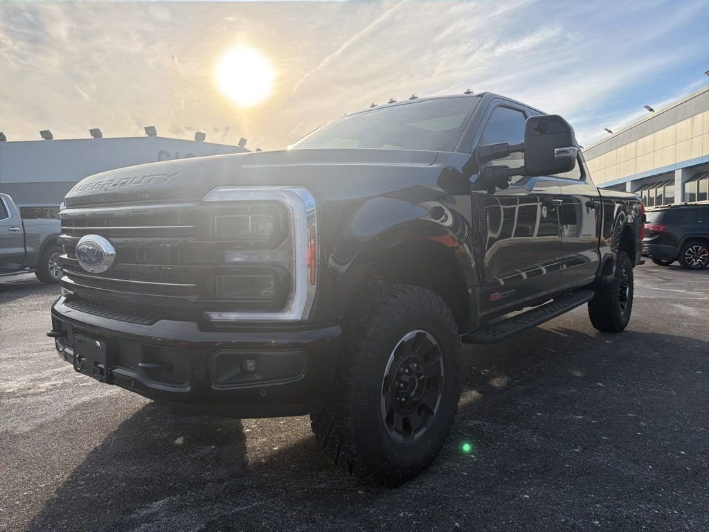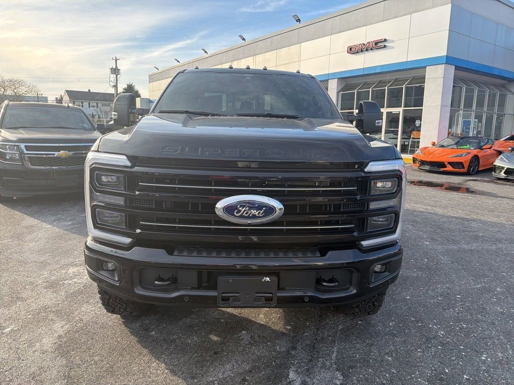 4WD, 14 Speakers, 4-Wheel Disc Brakes, 410 Amp Dual Alternators, ABS brakes, Adjustable pedals, Air Conditioning, All-Weather Floor Mats, Alloy wheels, AM/FM radio: SiriusXM with 360L, Auto High-beam Headlights, Auto tilt-away steering wheel, Auto-dimming Rear-View mirror, Automatic temperature control, Brake assist, Bumpers: body-color, Compass, Delay-off headlights, Driver door bin, Driver vanity mirror, Dual front impact airbags, Dual front side impact airbags, Electronic Stability Control, Emergency communication system: SYNC 4 911 Assist, Engine Block Heater, F-250 >10K GVWR Package, Flow-Through Console, Ford Connectivity Package (1-Year Included), Front anti-roll bar, Front Bucket Seats, Front Center Armrest, Front dual zone A/C, Front fog lights, Front License Plate Bracket, Front reading lights, Fully automatic headlights, Garage door transmitter, Heads-Up Display, Heated door mirrors, Heated front seats, Heated rear seats, Heated steering wheel, High Capacity 11.6 Axle Upgrade Package, Illuminated entry, Internet access capable: 5G Modem - Ford Connectivity Package, Leather steering wheel, LED Roof Clearance Lights, Low tire pressure warning, Memory seat, Navigation system: Connected Navigation, Order Code 703A, Outside temperature display, Overhead airbag, Overhead console, Panic alarm, Passenger door bin, Passenger vanity mirror, Pedal memory, Power door mirrors, Power driver seat, Power passenger seat, Power steering, Power windows, Pro Power Onboard - 2kW, Radio: B&O Unleashed Sound System by Bang & Olufsen, Rain sensing wipers, Rapid-Heat Supplemental Cab Heater, Rear reading lights, Rear seat center armrest, Rear step bumper, Rear window defroster, Remote keyless entry, Security system, SiriusXM w/360L, Speed control, Split folding rear seat, Steering wheel memory, Steering wheel mounted A/C controls, Steering wheel mounted audio controls, SYNC 4 w/Enhanced Voice Recognition, Tachometer, Telescoping steering wheel, Tilt steering wheel, Tough Bed Spray-In Bedliner, Traction control, Trip computer, Turn signal indicator mirrors, Twin Panel Power Moonroof, Unique Platinum Leather 40/Console/40 Seats, Upfitter Switches (6), Variably intermittent wipers, Ventilated front seats, Wheels: 20 Bright Machined & Painted Aluminum, 4WD.