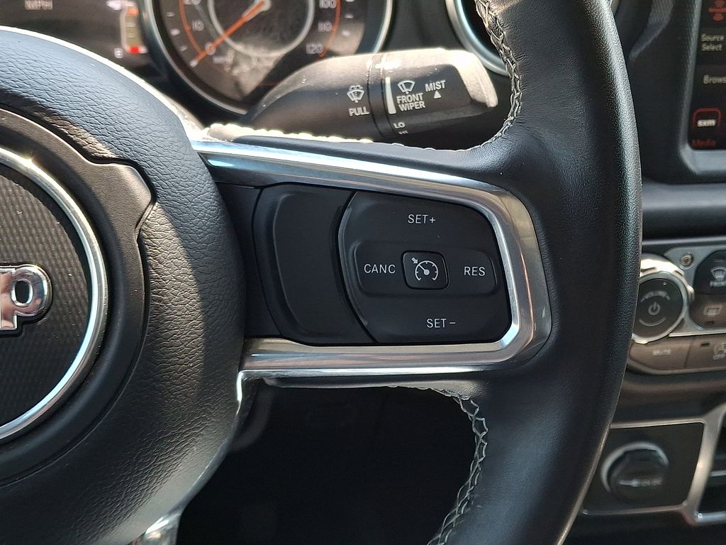 1-Year SiriusXM Guardian Trial, 110 mph Vehicle Max Speed Calibration, 240 Amp Alternator, 3.73 Rear Axle Ratio, 4-Wheel Disc Brakes, 400W Inverter, 5-Year SiriusXM Traffic Service, 5-Year SiriusXM Travel Link Service, 8 Speakers, 8.4" Radio & Premium Audio Group, 8.4" Touchscreen Display, ABS brakes, Air Conditioning, Alloy wheels, Alpine Premium Audio System, AM/FM radio: SiriusXM, Apple CarPlay/Android Auto, Auto-Dimming Rear-View Mirror, Automatic temperature control, Black 3-Piece Hard Top, Brake assist, Class IV Hitch Receiver, Cold Weather Group, Compass, Delay-off headlights, Driver door bin, Driver vanity mirror, Dual front impact airbags, Dual front side impact airbags, Electronic Stability Control, Emergency/Assistance Call, For Details, Visit DriveUconnect.com, Freedom Panel Storage Bag, Front anti-roll bar, Front Bucket Seats, Front Center Armrest w/Storage, Front dual zone A/C, Front fog lights, Front License Plate Bracket, Front reading lights, Full Length Floor Console Premium Armrest, Fully automatic headlights, Garage door transmitter, GPS Navigation, HD Radio, Heated door mirrors, Heated Front Seats, Heated Steering Wheel, Heavy-Duty Engine Cooling, Illuminated entry, Integrated roll-over protection, Leather steering wheel, Leather Trimmed Bucket Seats, Leather Wrapped Park Brake Handle, Leather Wrapped Shift Knob, Low tire pressure warning, Normal Duty Plus Suspension, Occupant sensing airbag, Off-Road Info Pages, Outside temperature display, Overland Cloth Bucket Seats, Panic alarm, ParkView Rear Back-Up Camera, Passenger door bin, Passenger vanity mirror, Popular Equipment Package, Power door mirrors, Power steering, Power windows, Premium Door Trim Panel, Premium Wrapped I/P Bezel, Quick Order Package 23G, Quick Order Package 24G, Radio data system, Radio: Uconnect 4 w/7" Display, Radio: Uconnect 4C Nav w/8.4" Display, Rear anti-roll bar, Rear Armrest w/Cupholder Seat, Rear reading lights, Rear Sliding Window, Rear Window Defroster, Remote keyless entry, Remote Start System, Security system, SiriusXM Traffic Plus, SiriusXM Travel Link, Speed control, Split folding rear seat, Steering wheel mounted audio controls, Tachometer, Telescoping steering wheel, Tilt steering wheel, Traction control, Trailer Hitch Zoom, Trailer Tow Package, Trip computer, Variably intermittent wipers, Voltmeter, Wheels: 18" x 7.5" Granite Crystal Aluminum.