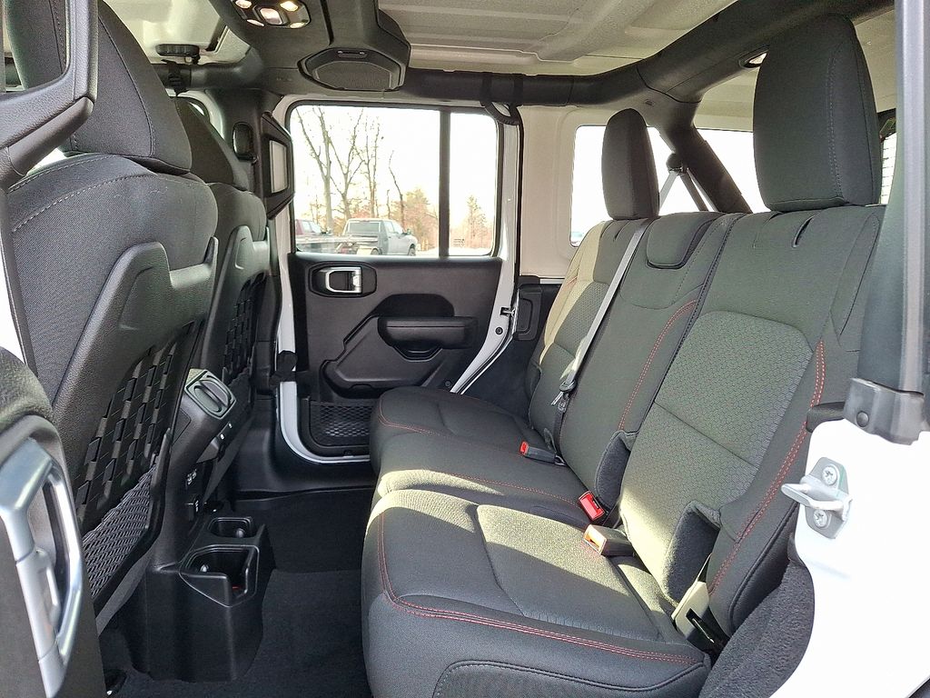 The Wrangler Rubicon is designed to conquer any terrain, with features like the advanced 4WD system, heavy-duty suspension, and 17-inch alloy wheels with all-terrain tires. Inside, you'll find premium cloth bucket seats, a heated steering wheel, and a state-of-the-art Uconnect 4C navigation system with an 8.4-inch display.