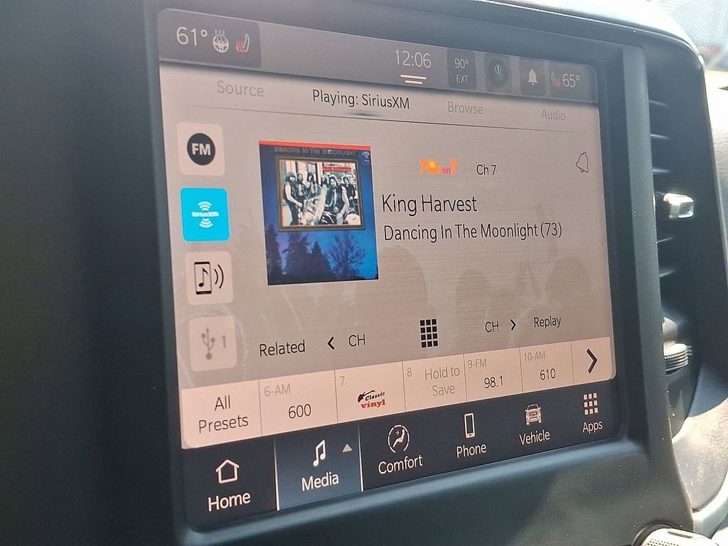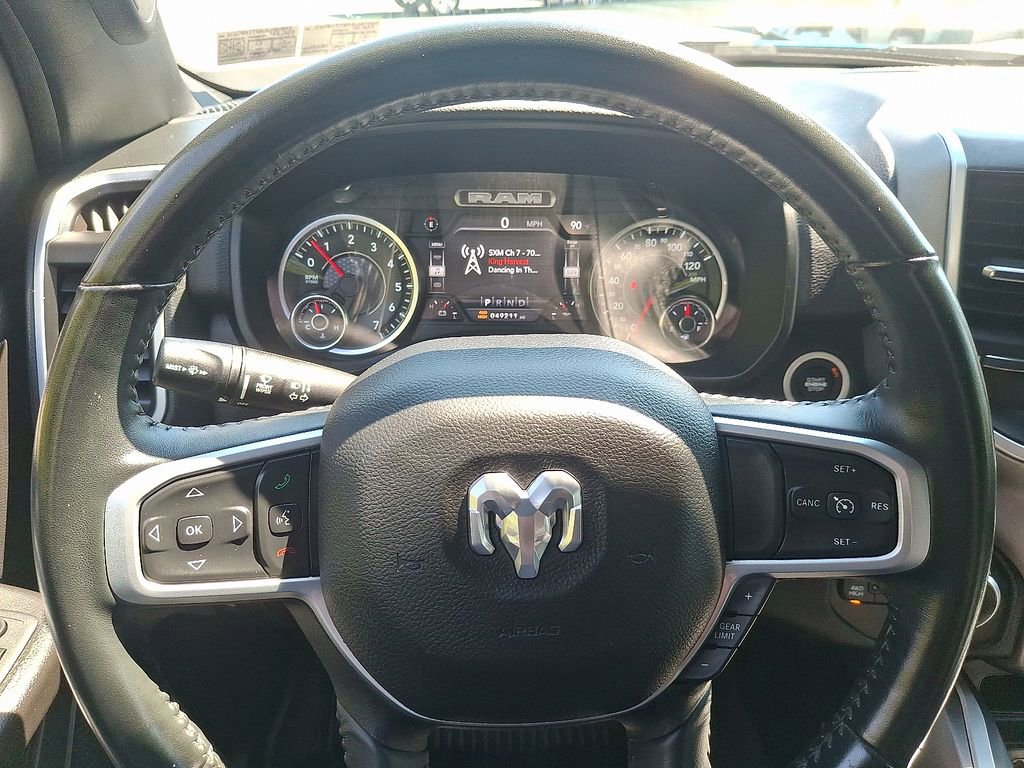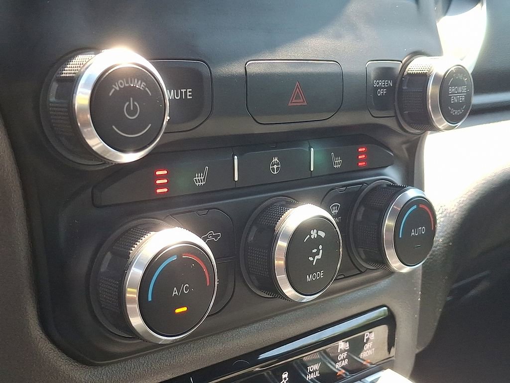 115V Auxiliary Power Outlet, 115V Auxiliary Rear Power Outlet, 2nd Row In Floor Storage Bins, 3 Rear Seat Head Restraints, 3.21 Rear Axle Ratio, 4 Way Front Headrests, 4-Wheel Disc Brakes, 400W Inverter, 48V Belt Starter Generator, 4G LTE Wi-Fi Hot Spot, 6 Speakers, 8.4 Touchscreen Display, ABS brakes, Air Conditioning, Air Conditioning ATC w/Dual Zone Control, All Plant-Installed Decals, Alloy wheels, AM/FM radio, Apple CarPlay, Auto-Dimming Exterior Driver Mirror, Auto-Dimming Rear-View Mirror, Big Horn Badge, Big Horn Level 2 Equipment Group, Black Exterior Mirrors, Black Interior Accents, Black Premium Power Mirrors, Bluetooth Handsfree Phone & Audio, Body Color Exterior Mirrors, Body Color Front Bumper, Body Color Premium Power Mirrors, Body Color Rear Bumper w/Step Pads, Brake assist, Bridgestone Brand Tires, Bucket Seats, Bumpers: chrome, Class IV Receiver Hitch, Cloth Bench Seat, Cluster 7.0 TFT Color Display, Compass, Connected Services Delete Credit, Connectivity - US/Canada, Convex Wide-Angle Mirror Insert, Delay-off headlights, Delete LED Lamp - Floor Console Bin, Deluxe Cloth Bucket Seats, Driver door bin, Dual front impact airbags, Dual front side impact airbags, Electronic Stability Control, Emergency communication system: SiriusXM Guardian, Exterior Mirrors Courtesy Lamps, Exterior Mirrors w/Heating Element, Exterior Mirrors w/Supplemental Signals, For Details, Visit DriveUconnect.com, Front anti-roll bar, Front Center Armrest w/Storage, Front fog lights, Front reading lights, Front Seat Back Map Pockets, Front wheel independent suspension, Full Length Floor Console, Fully automatic headlights, Global Telematics Box Module (TBM), Glove Box Lamp, Google Android Auto, GPS Antenna Input, Heated door mirrors, Heated Front Seats, Heated Steering Wheel, Illuminated entry, Integrated Center Stack Radio, Integrated Voice Command w/Bluetooth, Leather steering wheel, Low tire pressure warning, Manual Adjust 4-Way Front Passenger Seat, Manufacturer's Statement of Origin, Media Hub w/2 Charge Only USBs, MOPAR Front & Rear Rubber Floor Mats, Occupant sensing airbag, Outside temperature display, Overhead airbag, Overhead console, Panic alarm, ParkSense Front/Rear Park Assist w/Stop, ParkView Rear Back-Up Camera, Passenger door bin, Passenger vanity mirror, Power 2-Way Driver Lumbar Adjust, Power 8-Way Driver Seat, Power Adjustable Pedals, Power door mirrors, Power steering, Power windows, Power-Folding Mirrors, Quick Order Package 23Z Big Horn, Quick Order Package 25Z Big Horn, Radio data system, Radio: Uconnect 3 w/5 Display, Radio: Uconnect 5 W w/8.4 Display, Rear 60/40 Folding Seat, Rear anti-roll bar, Rear Center Armrest, Rear Dome w/On/Off Switch Lamp, Rear Power Sliding Window, Rear seat center armrest, Rear step bumper, Rear Wheelhouse Liners, Rear Window Defroster, Remote keyless entry, Remote Start System, Security Alarm, SiriusXM Radio Service, SiriusXM Satellite Radio, Speed control, Split folding rear seat, Sport Appearance Package, Sport Decal, Steering wheel mounted audio controls, Sun Visors w/Illuminated Vanity Mirrors, Tachometer, Telescoping steering wheel, Tilt steering wheel, Traction control, Trailer Brake Control, Trip computer, Universal Garage Door Opener, USB Host Flip, Variably intermittent wipers, Voltmeter, Wheels: 18 x 8 Cast-Aluminum Painted, Wheels: 20 x 9 Aluminum Chrome Clad (WRK).