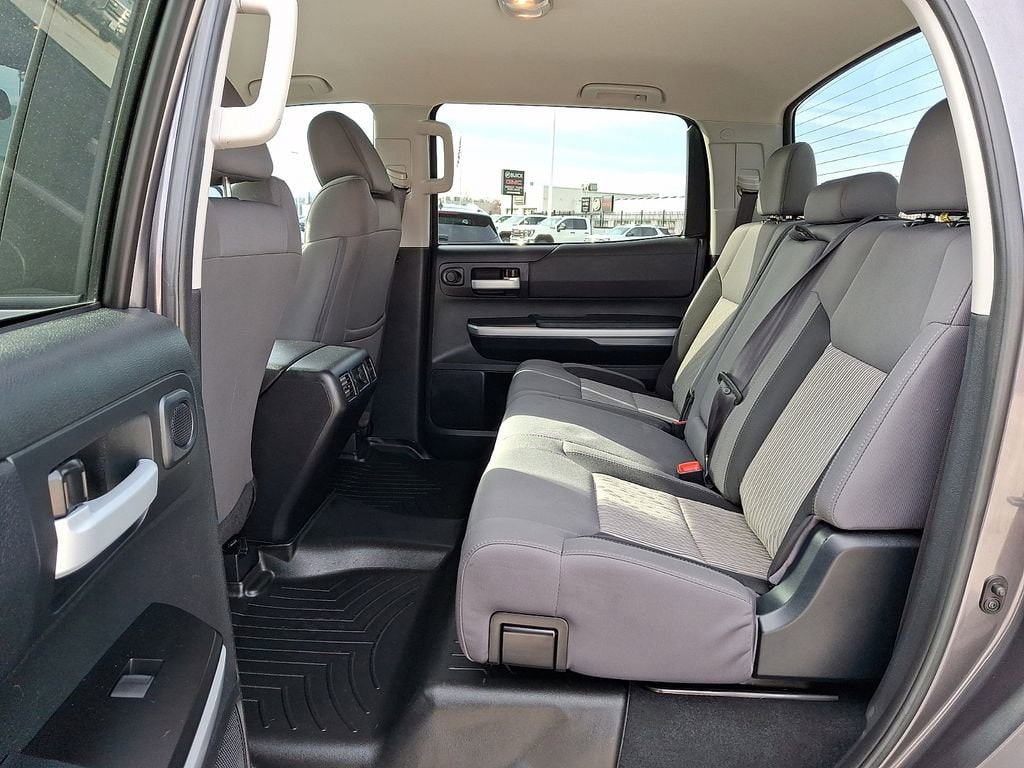 This Tundra SR5 also features a hard tri-fold tonneau cover, a spray-in bedliner, and an all-weather floor liner and door sill protector package, ensuring your truck is ready for any task or adventure.
